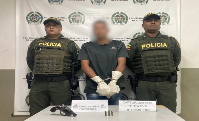 Mientras las patrullas del cuadrante se encontraban realizando planes de registro y control en el barrio centro, escuchan unas detonaciones a pocos metros donde se encontraban y se percatan que un ciudadano emprende la huida en una motocicleta, de inmediato reaccionan e interceptan a este hombre quien al momento del registro se le halla en su poder un arma de fuego tipo revolver con 6 cartuchos percutidos.