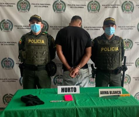 Mediante labores de registro y control en el barrio Las Ferias, donde los uniformados logran observar a una mujer pidiendo auxilio señalando a un hombre, quien al notar la presencia policial emprende la huida siendo alcanzado metros más adelante. La ciudadana manifiesta que la había intimidado con el cuchillo y la agredió en el piso para despojarla de sus pertenencias.