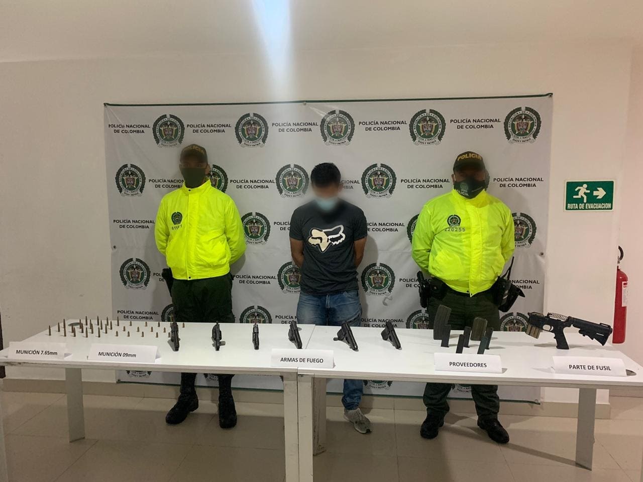 El capturado y material incautado, fueron puestos a disposición de la autoridad competente, el sujeto deberá responder por el delito de fabricación, tráfico y porte de armas de fuego y/o municiones de uso restringido, de uso privativo de las fuerzas armadas o explosivos.