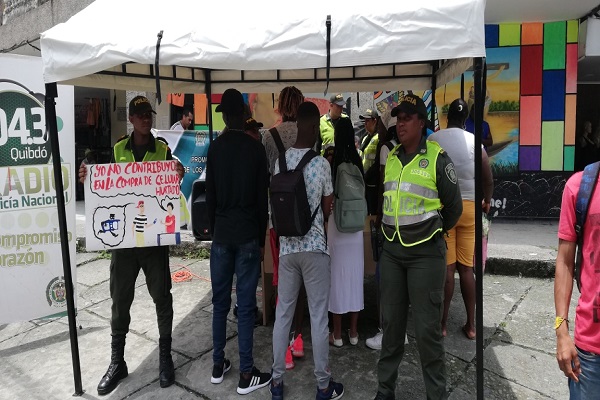 Las acciones preventivas, fueron adelantadas por unidades de Prevención y Educación ciudadana en el sector alameda reyes de la ciudad de Quibdó verificando los IMEI de los celulares que portaban los ciudadanos y enseñándolos como identificar el IMEI de su equipo celular motivándoles para que no adquieran celulares de dudosa procedencia, ya que al ser sorprendido portando un teléfono hurtado, podría incurrir en el delito de Receptación, con pena de 4 a 12 años de prisión y multa de 6.66 a 750 SMLMV.