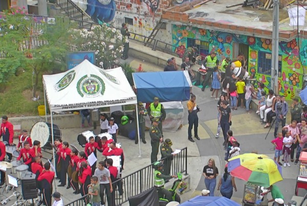 Luego de las actividades lúdico-recreativas que adelantamos en esta zona de la ciudad, con el objetivo de fortalecer la cultura ciudadana, el respeto, el ejercicio responsable de la libertad, dignidad y el uso de mecanismos alternativos para la resolución de conflictos dirigido a padres e hijos, 40 niños y niñas de la banda músico marcial del Liceo Salazar y Herrera, durante 2 horas, ambientaron con un concierto a la comunidad que vive en el sector y a los 600 turistas que en promedio suben diariamente para conocer esta zona de la capital de Antioquia.