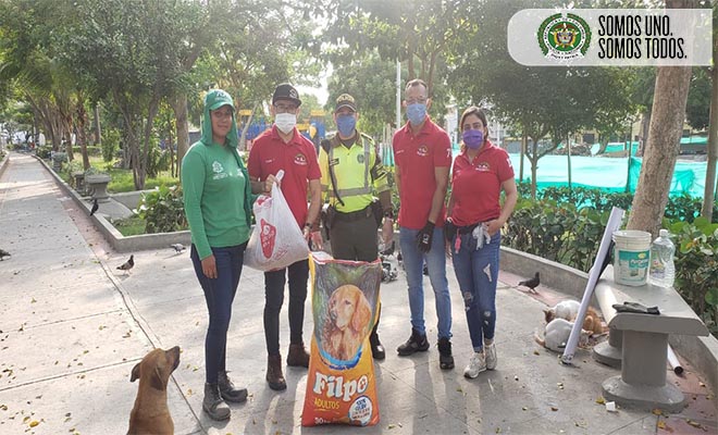 La Policía metropolitana con sus unidades preventivas de la seccional de Tránsito y Transporte, realizaron acompañamiento a fundación cual cuyo fin es darle un cuidado especial a los animalitos que habitan en la calle y/o han sido abandonados por sus dueños que de manera equivocada los dejan, pensando que pueden ser portadores de enfermedades o de algún virus relacionado al COVID-19.