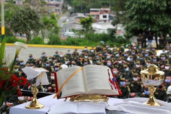 En la Escuela de Carabineros Alejandro Gutiérrez la comunidad académica convencida del precepto Dios y Patria elevamos al santísimo la plegaria para que regrese la paz y la tranquilidad en Colombia.