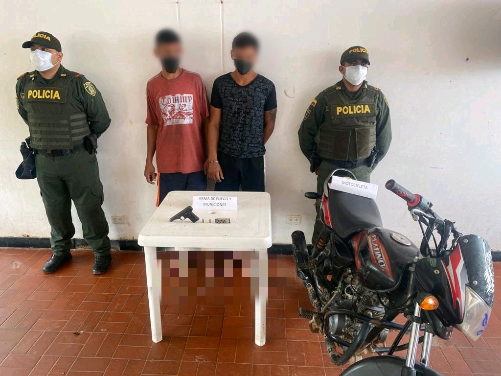 En medio de los controles que adelanta la Policía Nacional en el municipio de San Martín de Loba, Sur de Bolívar, se logró la captura de dos presuntos delincuentes quienes se movilizaban a bordo de una motocicleta violando el aislamiento preventivo y portando un arma de fuego.