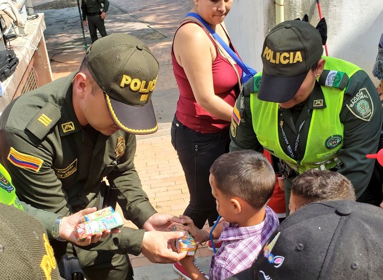 El Grupo de Protección a Personas e Instalaciones, les dio la bienvenida a los infantes acompañados de payasos y los atendió con un refrigerio como complemento importante, mediante la lúdica actividad, les entregó recomendaciones de autoprotección y seguridad, a tener en cuenta, sobre todo, a la entrada y salida, tanto de sus hogares, como de las instituciones educativas, previniendo y evitando la vulneración de sus derechos.