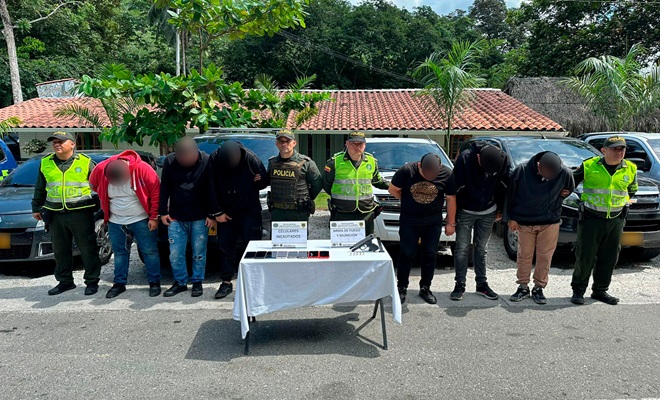 En el procedimiento fueron capturados 6 hombres con edades entre los 19 y 32 años, se inmovilizó 1 vehículo utilizado para cometer los hechos, se Incautaron 1 arma de fuego y 8 celulares, así mismo, se recuperaron los 4 vehículos hurtados.