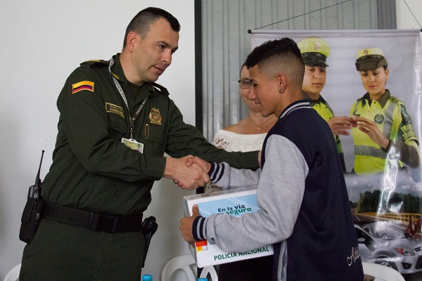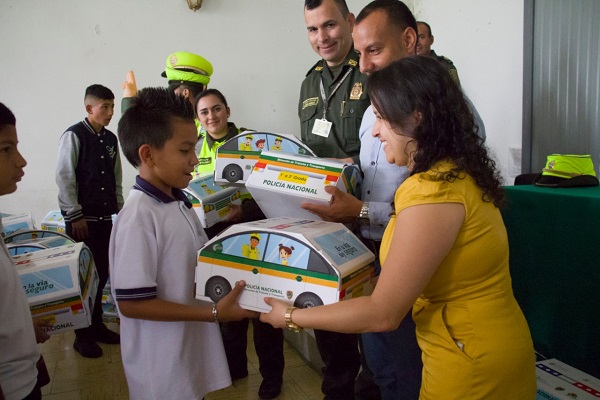 Teniendo en cuenta la alta accidentalidad presentada a nivel nacional basado en estadísticas que muestran que para la fecha de enero a abril de 2018 se contó con 111 menores lesionados en diferentes tipos de accidentes viales, nuestra seccional de tránsito y transporte lideró la campaña denominada “en la vía estoy seguro” mediante la entrega de estos kits a los estudiantes del colegio Veracruz y Pedro Uribe Mejía del municipio de Santa Rosa de Cabal, planteles educativos seleccionados por su ubicación la cual crea que sus estudiantes sean actores viales constantemente.