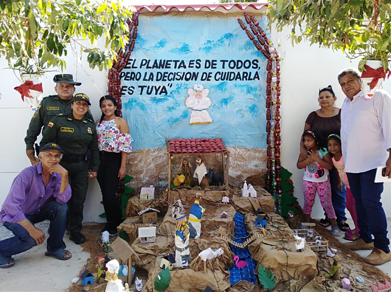 Durante más de 15 días la comunidad recolectó elementos reciclables para darle forma a los Pesebres y poder transmitir mensajes que incentiven a continuar aportando a la protección de los recursos naturales y al medio ambiente; posterior a eso, valoramos la creación y los materiales utilizados que fueran reciclables; en una visita a cada pesebre y respetando las tradiciones, cultura y la inclusión de objetos de la región, se eligió por parte del jurado: el primer puesto al pesebre construido en el barrio Shiler entregándose como premio un carnero y juguetes para los niños, segundo puesto un carnero y el tercer puesto una ancheta y refrigerio para celebración de la novena en la urbanización Villa Salah”: actividad presidida por el señor coronel Faber Dávila Giraldo, comandante departamento de Policía Magdalena