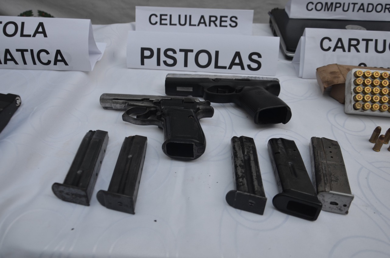 100 cartuchos calibre 9 mm, 22 cartuchos calibre 7.65 mm, 01 arma de fuego tipo pistola marca CZ calibre 7.65 mm, 01 arma de fuego tipo revolver sin marca calibre 38 mm, 01 arma de fuego artesanal tipo pistola marca Smith and Watson calibre 9mm, 01 arma neumática tipo pistola marca Sig Sauer,06 proveedores para pistola, 100 dosis de marihuana. 02 chasis de motocicletas y diferentes partes de la misma, 02 celulares gama media, 01 computador tipo portátil marca DELL, 1.500.000 mil pesos MCTE.