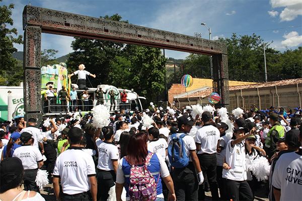 La Policía Metropolitana del Valle de Aburrá, en asocio con la Alcaldía Municipal a través de las Secretarias de juventud, Seguridad y Convivencia, promueven una estrategia de participación masiva compuesta con hombres y mujeres de la Policía integrantes del grupo de prevención y educación ciudadana, quienes después de coordinaciones y acciones realizadas con los gestores de participación Ciudadana de las diferentes estaciones que conforman la unidad, ponen en marcha jornada masiva en una zona específica de la Ciudad, denominada “rumba aeróbica por la convivencia y el respeto de los valores” en el marco del relanzamiento de los programas de participación ciudadana Cívica Infantil- Juvenil y Policía Cívica de Mayores, donde más de 1.500 niños niñas y adolescentes al igual que padres de familia brindando acompañamiento, alegría e integración a los niños, niñas, adolescentes y a sus familias.