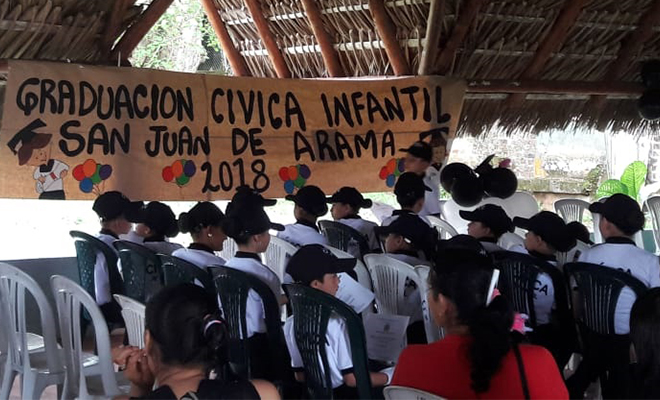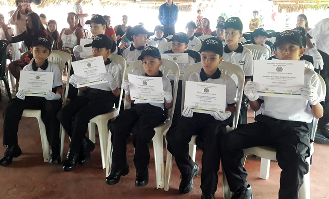 En dos actos de clausura académica, llevados a cabo en los municipios de San Juan de Arama y San Martín, el Departamento de Policía Meta, graduó a 42 niños, niñas y adolescentes que ingresaron al programa “Cívica Infantil y Juvenil”, desde donde, bajo el liderazgo del grupo de Prevención y Educación Ciudadana, apoyarán las actividades para la formación sobre valores y principios, especialmente durante esta época de navidad y vacaciones, que se busca generar espacios sanos para la adecuada ocupación del tiempo libre y prevenir la vinculación de los jóvenes en cadenas delictivas y situaciones de riesgo como el consumo de sustancias estupefacientes.