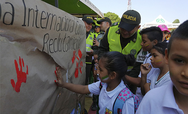 En el marco de la segunda fase del Plan Choque “El que la hace la paga” y la Política de Defensa y Seguridad para la Legalidad, el Emprendimiento y la Equidad, el Departamento de Policía Meta a través de la Seccional de Protección y Servicios Especializados, lanzó la campaña denominada “Mi Libertad es lo Primero” en conmemoración del Día Internacional Contra el Reclutamiento Forzado de Niños, Niñas y Adolescentes por parte de Grupos Armados Organizados al Margen de la Ley, acción que busca la prevención, defensa y protección de los derechos de la niñez en el territorio colombiano.
