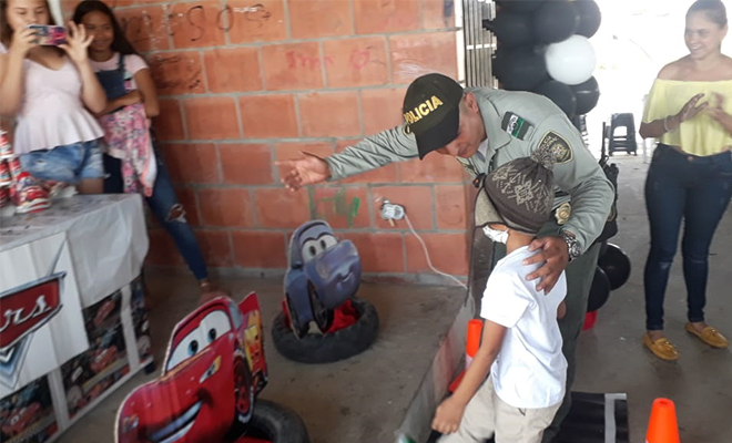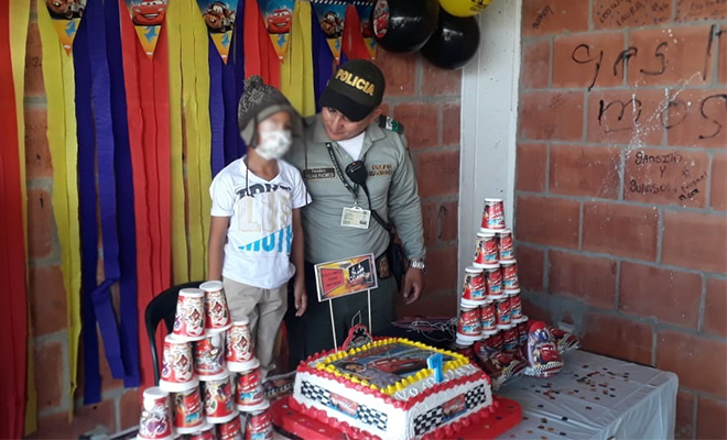La celebración sorpresa se realizó en la caseta comunal de la ciudadela La Sabana, en donde Jeyson, era esperado por sus familiares, amiguitos y uniformados, para compartir un día especial. El evento fue liderado por la Policía Nacional de todos los colombianos gracias a la colaboración de los comerciantes que suministraron la torta, bebidas y la decoración del lugar. De igual forma, se realizó la presentación de un show de payasos, baile llanero, piñata y actos recreativos.