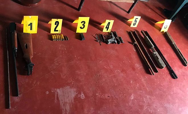 Los capturados, conocidos en el mundo del delito con los de ‘tío’, ‘Armero’, ‘el abuelo o cucho’, ‘flaco’, ‘la mona’ y ‘bareta’, fueron sorprendidos con cinco armas de fuego, ocho cartuchos para armas cortas, cuatro proveedores, gran cantidad de repuestos y elementos para armería; y también seis kilos de estupefacientes (marihuana y cocaína), elementos para la producción de dosis personales y 139 mil pesos en efectivo, producto de la venta clandestina de drogas ilícitas.