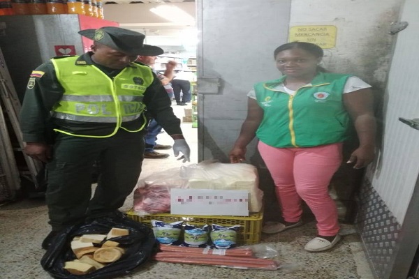 En el marco de la cuarta fase del Plan de Choque, “Construyendo Seguridad” la Policía Nacional en el municipio de Quibdó, en coordinación con la secretaria de salud departamental, realizo la incautación de 25 kilos de queso costeño y 12 kilos de carne de cerdo por contaminación cruzada, (alimento limpio entra en contacto directo con un alimento contaminado) además de productos lácteos y salchichas vencidas a un supermercado de la ciudad de Quibdó.