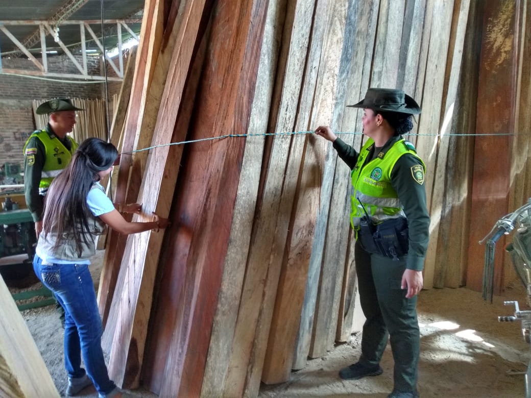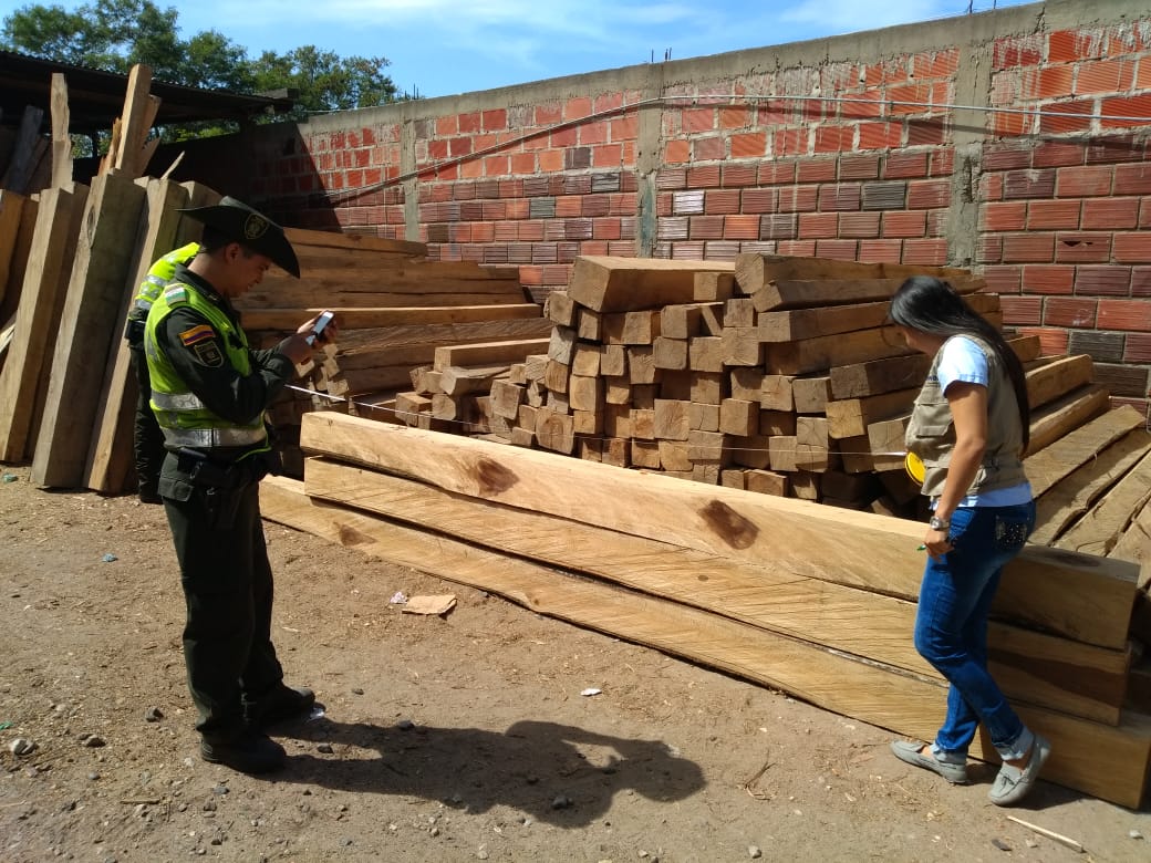 El hallazgo fue realizado momentos en que realizaban actividades de registro a los centros de distribución de materiales maderables, logrando como resultado la incautación de 106 metros cúbicos de madera los cuales estaban depositados en bodegas listos para ser comercializados de manera ilegal, sin contar ningún documento expedido por el Instituto Colombiano Agropecuario ICA que acreditara la legalidad de los maderos.