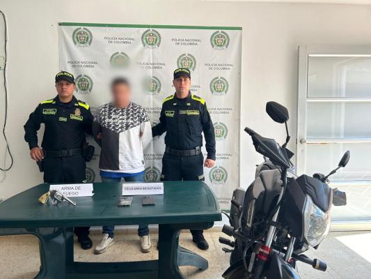 En el procedimiento policial se logra la incautación de un arma de fuego tipo revolver, calibre 38mm y una motocicleta, marca AKT 125, color negro, con dos placas de identificación externa, una de ellas elaborada de manera artesanal, en la que al parecer fue utilizada por estos sujetos para cometer esta conducta punible.
