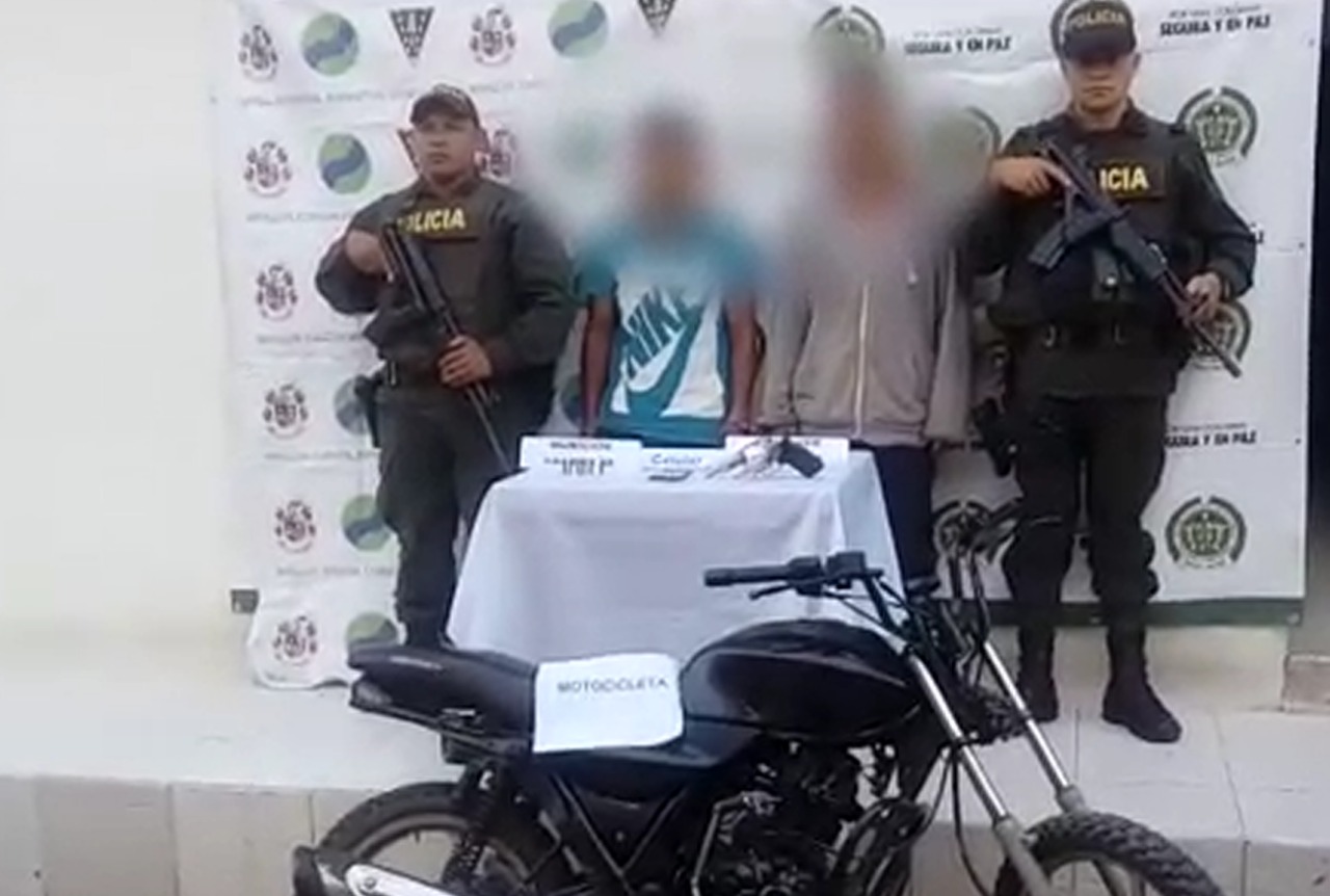 ‘Rúa’ y ‘Danielito o Cejitas’ al momento de la captura les fue incautado un revólver con munición, al parecer pretendían perpetrar un hecho delictivo.