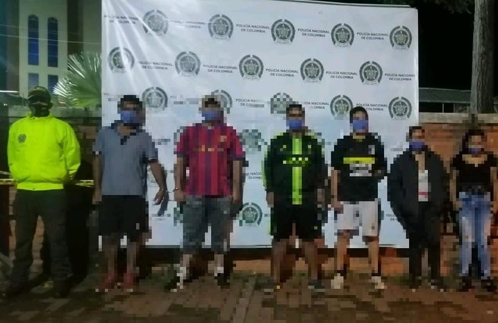 Es así como de inmediato se activó un operativo por parte del personal Policial donde teniendo en cuenta la distancia de la vereda al casco urbano, se solicitó el acompañamiento al personal de la sexta brigada del Ejército Nacional donde al llegar al lugar de los hechos, se logró evidenciar la presencia de 06 personas entre ellos 02 mujeres quienes estaban departiendo e incumpliendo la normatividad vigente, entre ellas las medidas sanitarias y el toque de queda, siendo capturados en flagrancia de inmediato.