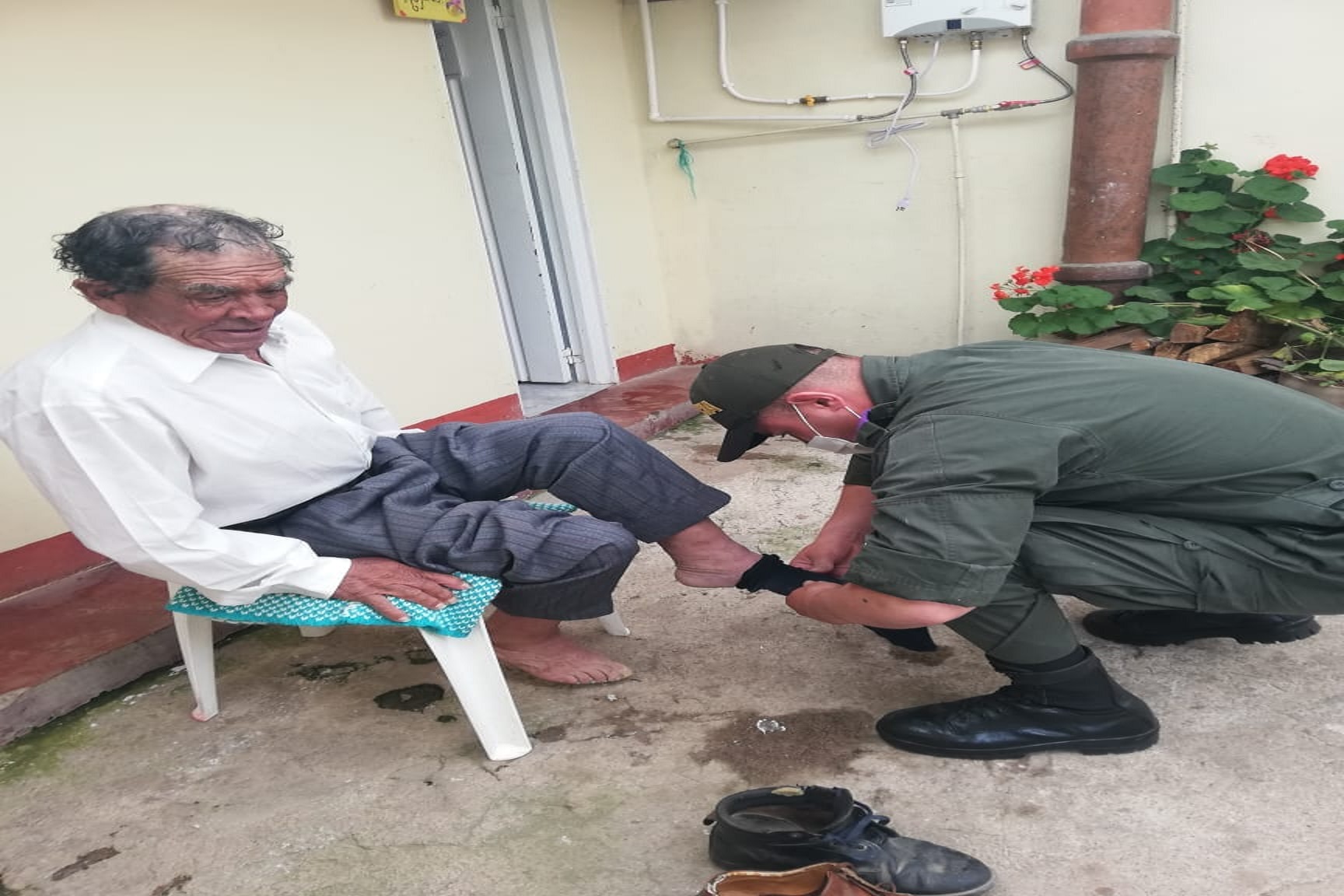 Teniendo en cuenta las diferentes actividades de acercamiento y reconstrucción de tejido social en las comunidades del departamento, momentos en que el señor Patrullero Juan Gabriel Velásquez Cubillos realizaba patrullajes de rutina, conoció la historia de un adulto mayor, llamado Alfonso a quien por cariño, le dice “TIA CUY”, un hombre de escasos recursos, quien pasa sus noches en un hogar geriátrico otorgado por la administración municipal, el cual toma sus alimentos que son donados por la comunidad y quien en la actualidad posee problemas de salud debido a su edad.