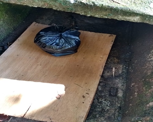 Con la información suministrada, la patrulla del cuadrante 6 llegó al sitio donde halló una alcantarilla tapada con tablas y escombros, al destaparla descubrió una bolsa que contenía 50 dosis del estupefaciente.