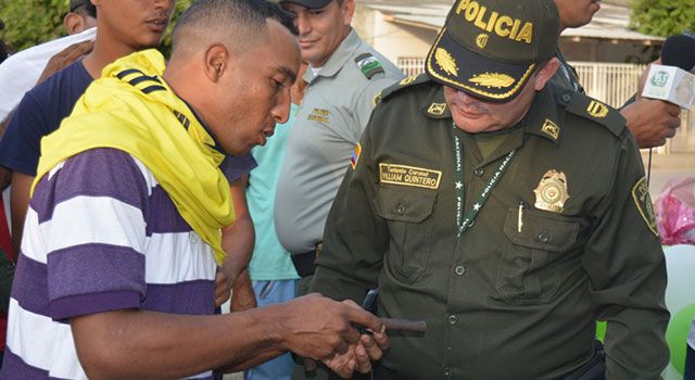 Como estrategia contra el homicidio y las lesiones personales, unidades adscritas a la prevención y educación ciudadana PRECI, en coordinación con la Secretaría de Gobierno Municipal, lideraron un plan desarme bajo el lema “Es Mejor Amarse unidos todos que Armarse”, recibiendo 80 arma blancas entre esas unas hechizas, a cambio les fue entregado detalles como elementos de hogar, licuadoras, hamacas ollas entre otros enseres que serán utilizados en sus actividades diarias en sus familias.