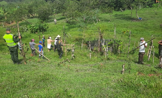 Como garantes de la protección de nuestros recursos naturales renovables y conscientes del riesgo de deslizamiento de tierras que tiene esta vereda, nuestros uniformados tomaron la iniciativa de realizar la campaña “Sembratón de vida”, donde se dio a conocer a la comunidad la importancia de los árboles en el sector y les fue brindada una previa capacitación sobre la correcta siembra de los mismos. Nuestros policiales, lograron gestionar los elementos necesarios para el desarrollo de la actividad, e iniciaron las labores de labranza, en la que se obtuvo como resultado la siembra de más de 50 árboles, que tienen como fin, la protección del nacimiento de agua que abastece a los habitantes del sector.