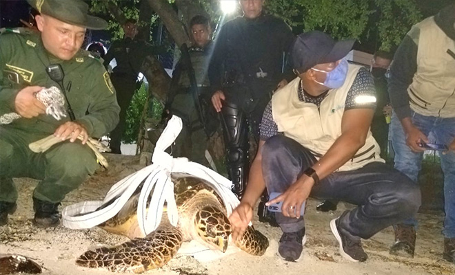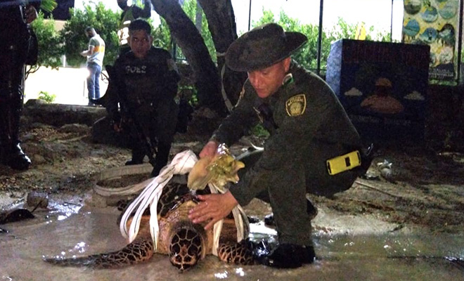 Gracias a la labor de la Policía Ambiental y Ecológica salvamos la vida de una tortuga marina.