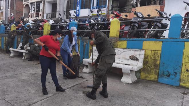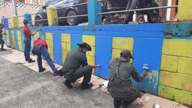 Con el objetivo de crear espacios de sana convivencia en parques de la ciudad, integrantes del Grupo de Protección Ambiental y Ecológica, estudiantes del Centro de Formación de Auxiliares de Policía Cartago, en compañía del personal del Cuerpo de Bomberos Voluntarios en articulación con el sector comercio, almacenes agrícolas y supermercados del sector adelantaron una actividad de atención integral entornos y parques públicos.