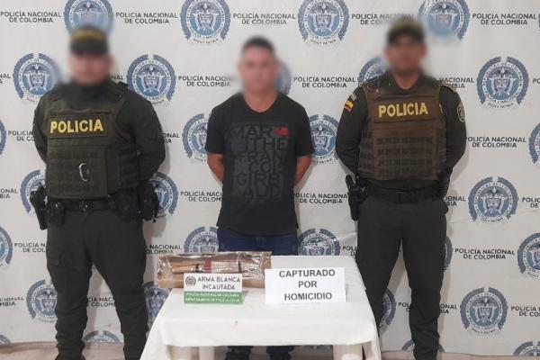 En actividades de patrullaje y control, por parte del cuadrante del sector, se informa a la patrulla de un ciudadano que acaba de cometer un delito en el corregimiento de San José de Oriente, quien propinó una herida en el cuello con arma blanca causándole la muerte a otra persona de sexo masculino, al parecer todo se dio por problemas pasionales, por tal motivo se captura por el delito de homicidio, de igual forma se le incauta un arma blanca tipo cuchillo, con el cual cometió el hecho.