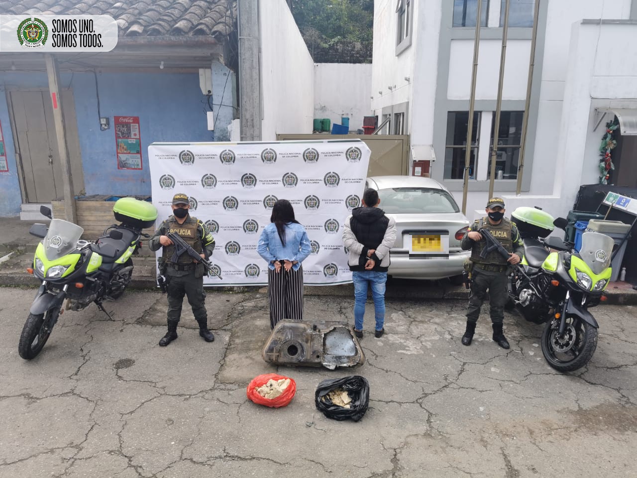 Mediante labores de registro y control realizadas por los policiales, implementadas para fortalecer la seguridad  sobre la vía Junín Pedregal del municipio de Mallama,  se requieren a dos personas las cuales se movilizaban en un vehículo de servicio particular, al realizar la respectiva  inspección del mismo, en el tanque del combustible se encuentran ocultos en modalidad de caleta, 14.0000 dosis de base de coca y 2.666 dosis de bazuco, sustancia avaluada en  50 millones de pesos aproximadamente.