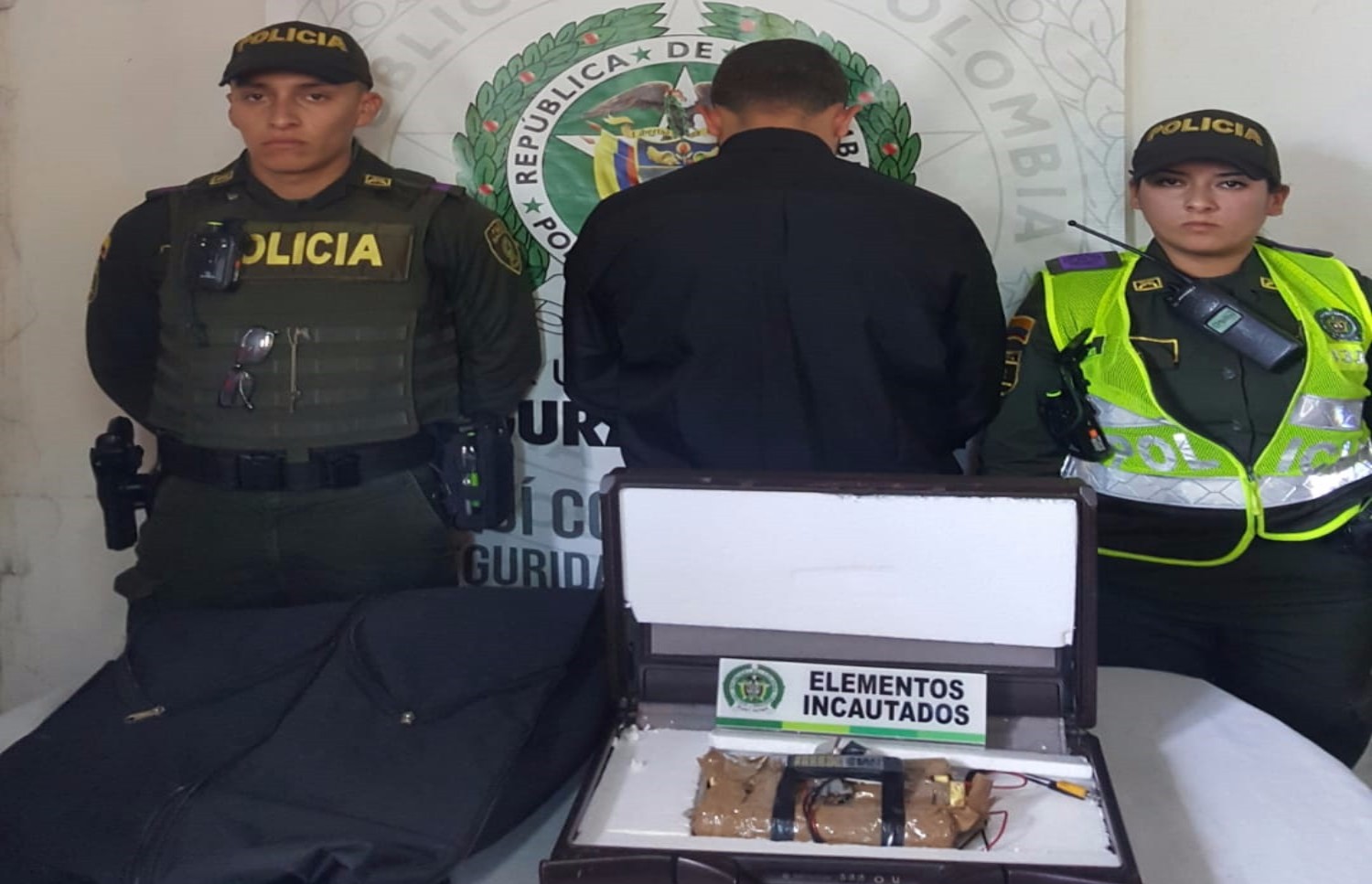 En otra acción policial, la oportuna reacción del cuadrante del Poblado, logró frustrar un intento de hurto a una entidad financiera del sector, luego que se diera en flagrancia la aprehensión de un adolescente de 16 años, quien, con simulación de un artefacto explosivo que traía dentro de un maletín, subió hasta el segundo piso e intimidó a los funcionarios, exigiéndoles la entrega de todo el dinero. Luego de ser inspeccionado el maletín por profesionales de antiexplosivos de la Policía Nacional, hallan dentro del mismo, tubos de PVC, hierro, cables de colores y un celular, que, al estar envueltos en cintas, aparentaba ser una carga explosiva.
