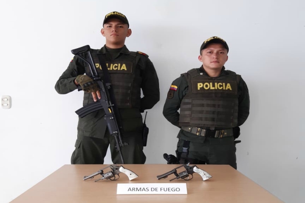 Continuando con la ofensiva permanente contra los delitos que afectan la vida humana, el departamento de Policía Tolima se permite informar que siendo aproximadamente las 06:00 de la mañana, momentos en que personal del cuadrante realizaba patrullaje de rutina por la vereda las mirlas jurisdicción del corregimiento de Herrera, mediante información de fuente humana, las unidades Policiales lograron el hallazgo a un costado de la vía de una bolsa plástica color negra, la cual en su interior se encuentra dos armas de fuego, tipo revolver calibre 38, siendo trasladadas de inmediato a las instalaciones policiales para el respectivo procedimiento, las cuales fueron dejadas a disposición Fiscalía 4 seccional de Chaparral.