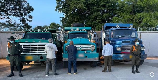 Como resultado de estas acciones ofensivas y la sinergia institucional, durante las últimas horas, en zona rural del municipio de Lejanías, vereda Buenos Aires, Unidades Móviles de Carabineros logran la captura en flagrancia de tres hombres de 52, 54 y 65 años de edad, quienes fueron sorprendidos extrayendo material de arrastre a orillas del río Urichari, en tres vehículos tipo volqueta, sin contar los respectivos permisos de la autoridad ambiental competente.