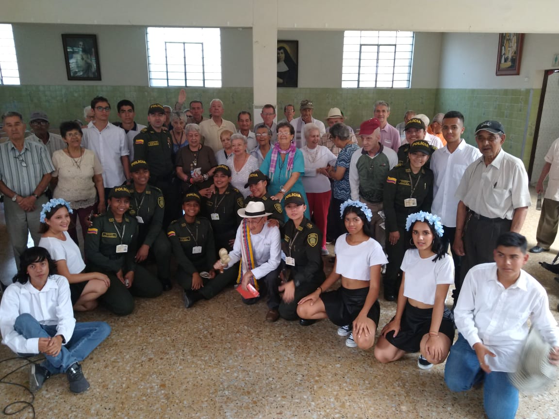 La Escuela de Policía Carlos Eugenio Restrepo, bajo el liderazgo de la señora Teniente Coronel Angélica Marina Díaz Gómez Directora Escuela, el Grupo de proyección social y el personal de estudiantes de la Cohorte 048 de este Campus Universitario, llevaron alegría a los abuelos del Hogar Santa Teresa del municipio de Itagüí, Antioquia.
