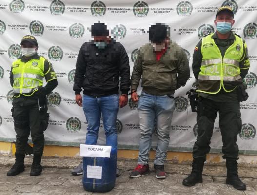 También fueron capturados en flagrancia dos sujetos de 35 y 48 años de edad, por el delito de tráfico, fabricación o porte de estupefacientes, de igual manera fue incautado el vehículo en el que se movilizaban; sustancia, vehículos y capturados fueron puestos a disposición de la Fiscalía URI de Pasto.
