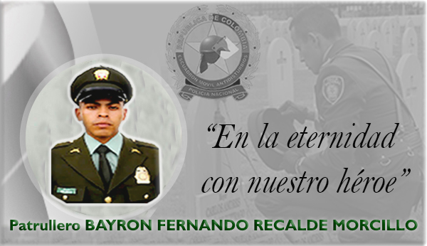 Lamentablemente informamos el fallecimiento del patrullero Bayron Recalde, natural de Popayán (Cauca) quién había sido gravemente lesionado por impacto de arma de fuego cuando participaba en operativos de restablecimiento del orden público en la vía Pasto - Tumaco, sector de Llorente.