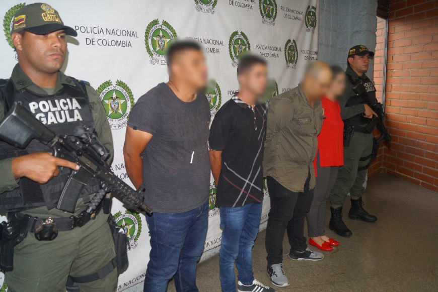 La Policía Nacional en desarrollo del plan choque, en su tercera fase “el que la hace la paga”, construyendo seguridad, en coordinación con la Fiscalía General de la Nación, logró las capturas de cuatro personas que habían secuestrado a un comerciante en el municipio de Envigado, Antioquia; en otro procedimiento, también en el mismo municipio, fueron capturadas cuatro personas más entre ellas una mujer por el delito de extorsión.