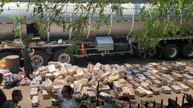 Previamente, la Unidad Básica de Investigación Criminal de la Región de Antinarcóticos No.3, había obtenido información importante mediante fuente humana, de un cargamento de marihuana que tenía como destino la Guajira. Es así como se desplegó un operativo y con ayuda del olfato del canino ‘Mago’, se logró ubicar al interior de un camión cisterna, 3.087 paquetes rectangulares envueltos en cinta, en cuyo interior se halló una sustancia vegetal, color verde, que luego de practicarle la prueba de identificación preliminar homologada P.I.P.H., arrojó positivo para marihuana y sus derivados, con un peso neto 2.798 kilos, así mismo un kilo de clorhidrato de cocaína.
