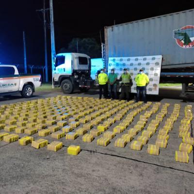 El segundo caso se realizó en el eje vial Río Ermitaño – Lizama, kilómetro 148 sector denominado “El Cucharo”, jurisdicción del municipio de Barrancabermeja, donde los policías hallaron 1.684 panelas rectangulares en un compartimento adaptado bajo un contenedor de un vehículo tipo semirremolque. Luego de las coordinaciones realizadas con Policía Judicial para practicar la Prueba de Identificación Preliminar Homologada P.I.P.H, esta arrojó positivo para cannabis y sus derivados, con un peso de 842 kilogramos, por lo que se inició el proceso de judicialización del conductor del vehículo, un ciudadano de 40 años originario de Buenaventura a quien le dictaron medida de aseguramiento en centro carcelario; de igual forma, se realizó la inmovilización del automotor de placas SZY 583, dejándolo a disposición de las autoridades competentes.