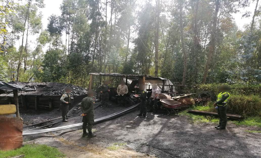 Durante el procedimiento se encontraron (2) malacates para la comisión del ilícito y (5) toneladas de mineral carbón, elementos que fueron incautados y estaban avaluados en más de $17.500.000. Capturados de 31, 34, 38, 41 y 65 años de edad, fueron dejados a disposición ante la Fiscalía 23 de Sogamoso por el delito de explotación ilícita de yacimiento minero.