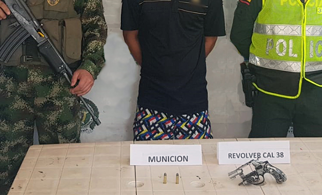 El segundo caso, liderado por nuestras unidades del Modelo Nacional de Vigilancia Comunitaria por Cuadrantes, se registró en la vereda la Ye del municipio de Puerto Rico, con la captura de un joven de 18 años, a quien en medio de un registro a personas se le halló en su poder un revólver marca Llama, calibre 38, sin permiso para porte o tenencia.