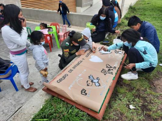 Esta campaña de impacto, tiene como objetivo prevenir delitos sexuales que afecten a niños, niñas y adolescentes, actividad desarrollada en el parque infantil Gran Plaza, generando espacios lúdicos y recreativos, con la utilización de materiales pedagógicos como mesas para colorear, carteleras educativas e inflables, acción que nos permite socializar la activación de las rutas pertinentes e incentivar la denuncia ante cualquier factor de riesgo para nuestros infantes. De igual manera, se genera esa prevención de alerta en los padres de familia, directos responsables del cuidado y protección de los derechos de nuestros niños, niñas y adolescentes, garantizando la protección de los derechos humanos y coadyuvar al libre crecimiento y desarrollo de los menores.