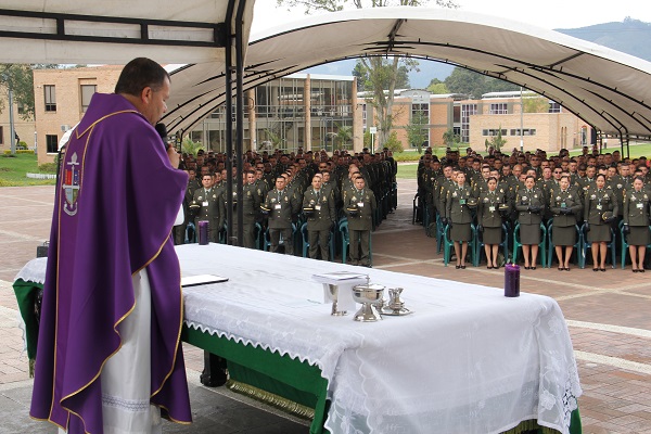 Así mismo durante el recibimiento se celebró la eucaristía que estuvo a cargo del señor Presbítero Carlos Mancera, Capellán de la Escuela que contó con la presencia de 792 señores Subintendentes a realizar el Diplomado en “Prevención y Seguridad Ciudadana”. Es importante resaltar, que este diplomado va enfocado a fortalecer la convivencia y seguridad ciudadana y el respeto por los derechos humanos.