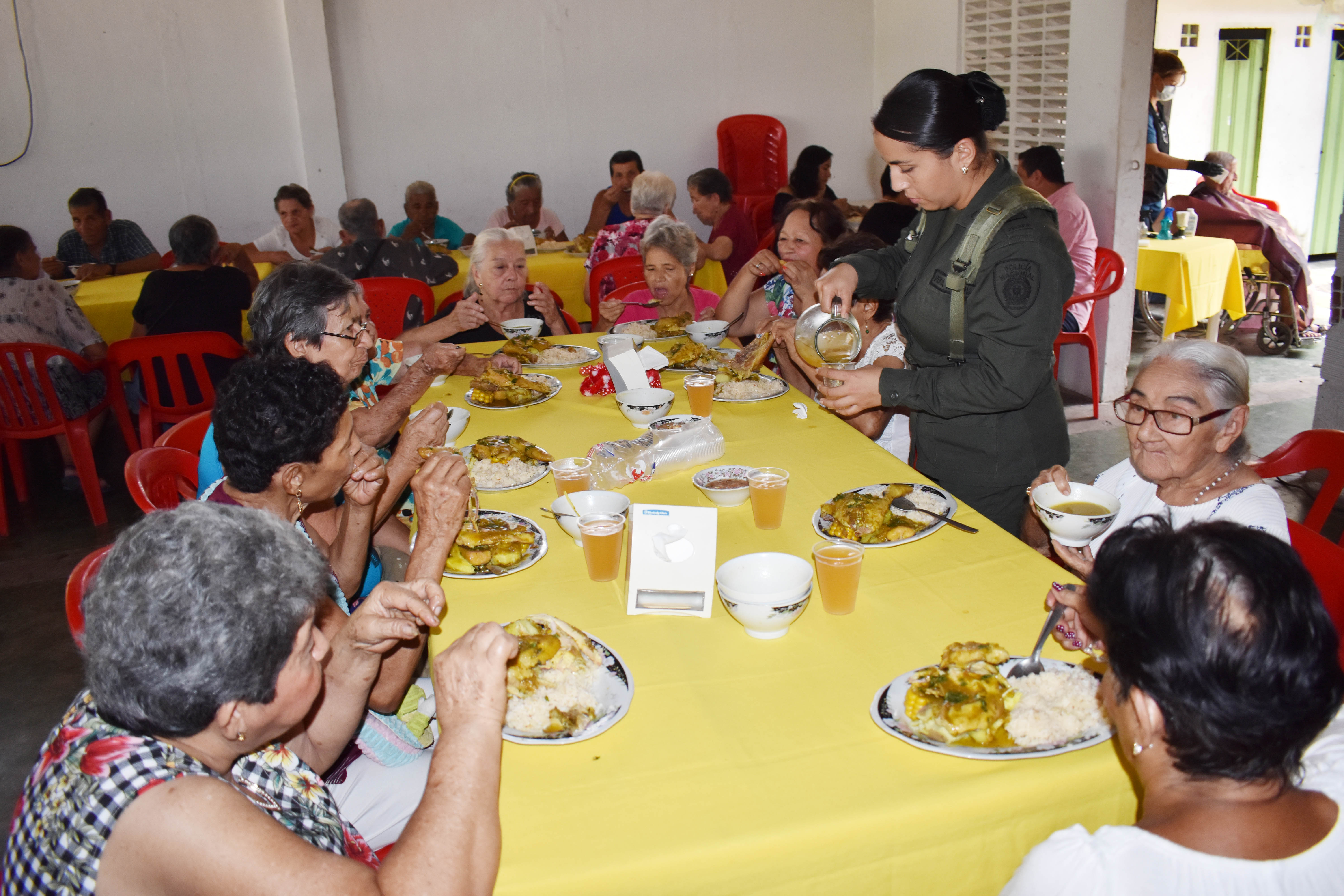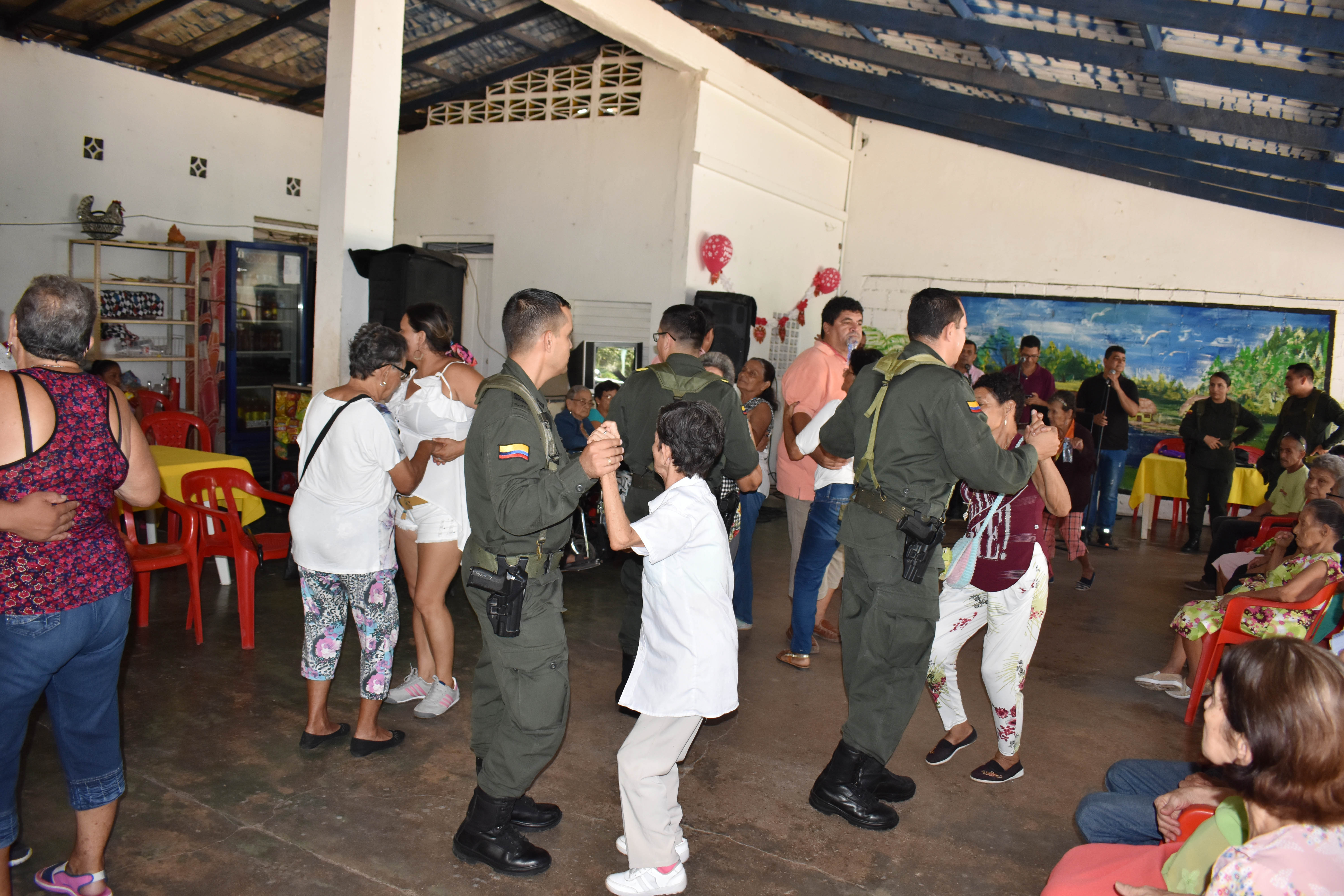 El personal policial de la escuela internacional del uso de la fuerza policial para la paz “cenop”, llegó al corregimiento de gualanday, allí se encontraban más de 50 abuelitas, para compartir y celebrar en grande esta fecha tan especial en el mes de las madres.