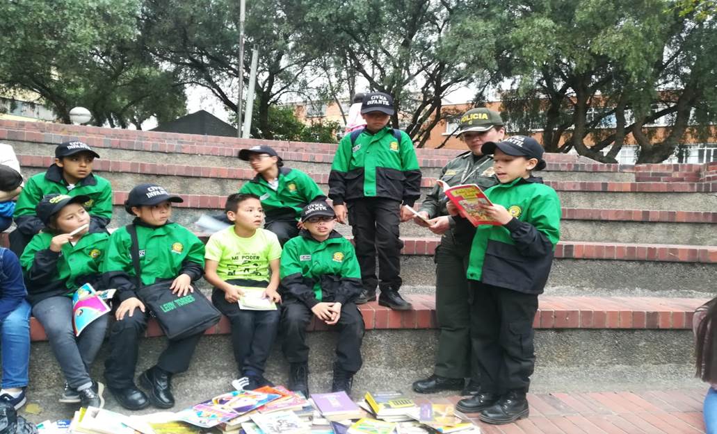 Con el lema 'te reto entre letras', nuestra uniformada ya ha trabajado de la mano con aproximadamente 30 niños y los integrantes del Grupo de Cívica Infantil del municipio de Duitama, aprovechando los parques para divertirse mediante el hábito de la lectura y dejar volar la imaginación.