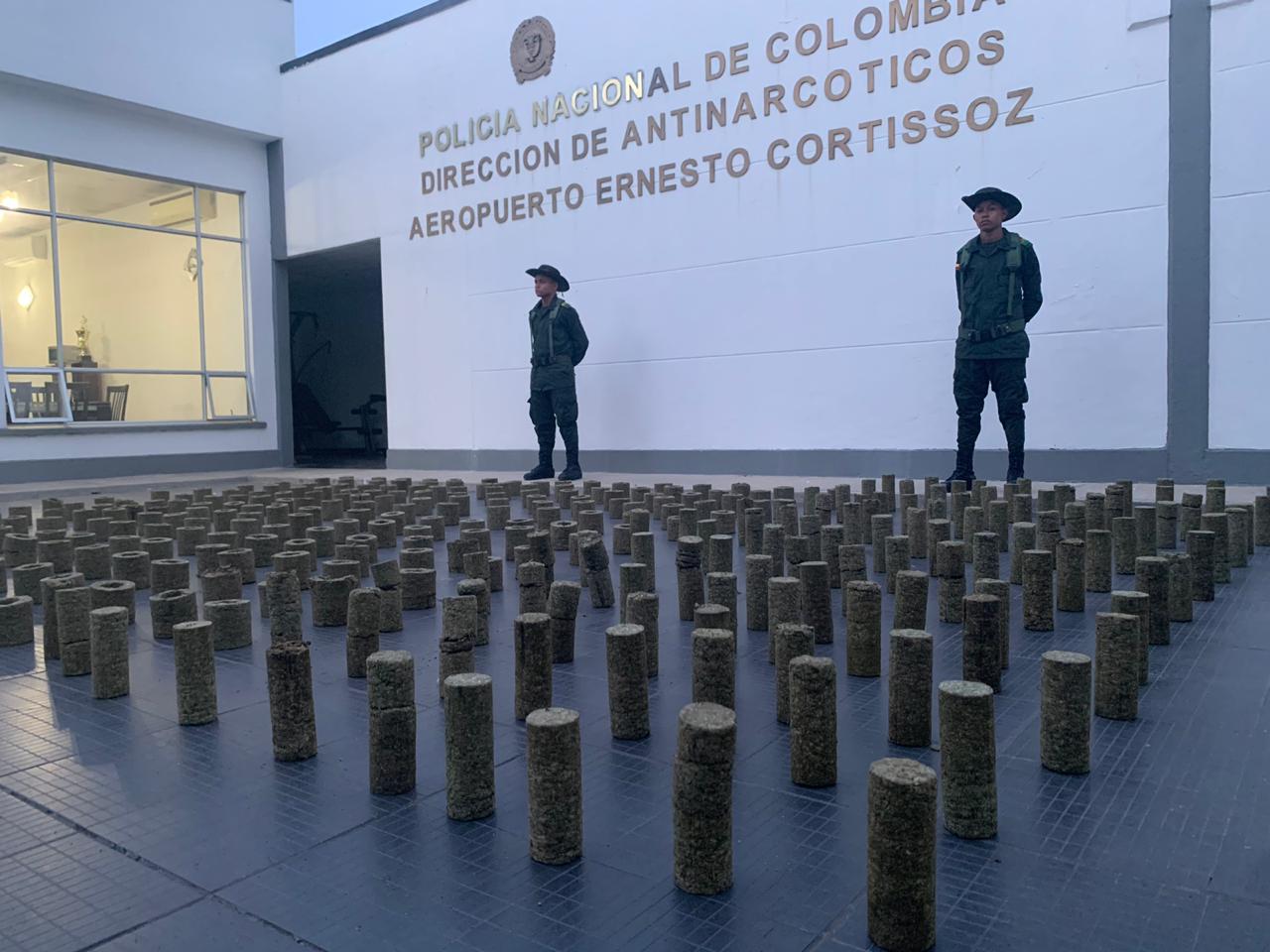 En las últimas horas, la Policía Nacional a través de los controles que realiza en la terminal aérea de esa ciudad logró la incautación de 382.000 gramos de marihuana al interior de 40 cilindros metálicos que tenían como destino la isla de San Andrés.