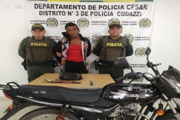 En el marco de la estrategia “El que la hace la paga” del señor presidente de la República, la Policía Nacional en la lucha frontal contra todo tipo de delitos que afecten la convivencia ciudadana, personal integrante del modelo nacional de vigilancia comunitaria por cuadrantes, logró en las últimas horas la captura de una persona la cual habría intimidado con un arma blanca a otro ciudadano para hurtarle su moto en el municipio de la Jagua de Ibirico.