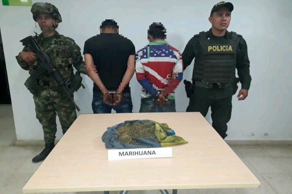 Continuando con los operativos desarrollados contra la droga y el delito, el departamento de Policía Tolima se permite informar que siendo aproximadamente las 6:00 de la mañana, momentos en que personal del cuadrante junto a uniformados del Ejército Nacional realizaba planes y controles a personas y vehículos en la vereda las juntas jurisdicción del corregimiento de Herrera, se realiza señal de pare a dos sujetos de 24 y 25 años de edad quienes se movilizaban en una motocicleta color negra de mediano cilindraje a quienes al momento de realizarles registro a personas se le hallo en su poder una panela prensada con 481 gramos de marihuana equivalentes a cerca de 980 dosis, siendo capturados de inmediato.
