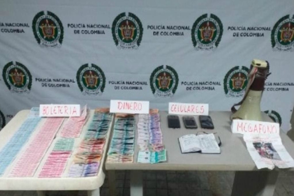 La detención de los sujetos tuvo lugar en el barrio Las Vegas y en el hecho se incautó una balotera con motor, un megáfono, tres celulares, bonos de apuesta y más de un $1.200.000 en efectivo al parecer producto de la venta de dicha actividad por solo uno de los vendedores.